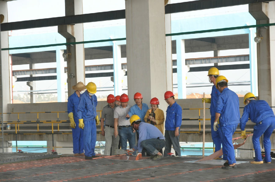 在精煉三車間,趙總從一樓走到二樓,邊走邊看,任總詳細向趙總匯報了精煉三車間的生產(chǎn)情況,生產(chǎn)工藝。精煉三車間是2014年新建的車間,2015年11月投產(chǎn),主要生產(chǎn)電積銅。趙總聽了任總的介紹,不停地點頭稱贊。在二樓,趙總停下來,認真觀看工人對產(chǎn)出的銅板進行外觀校正,看到光亮如鏡,四周整齊的銅板,連聲稱贊廣西銀億的制銅工藝確實先進,非常高興,不由自主的拿出智能手機,拍下了車間工人勞動的情景。