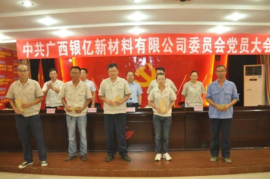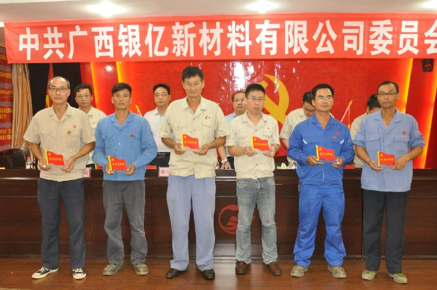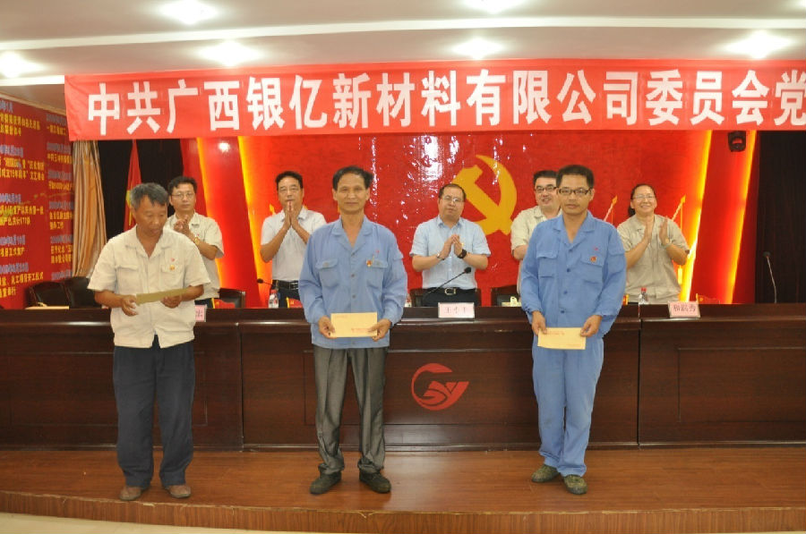 生日活動(dòng)豐富,蘊(yùn)意深刻。一是黨委給每一個(gè)黨員配發(fā)了黨徽,莊重佩戴在左胸。二是頒發(fā)了12個(gè)黨員先鋒崗。三是給優(yōu)秀青年、入黨積極分子頒發(fā)了青年先鋒崗。四是給3名困難黨員發(fā)放了慰問(wèn)金。五是宣讀了中共玉林市委、中共博白縣委的決定:中共廣西銀億公司黨委被評(píng)為玉林市先進(jìn)黨組織;廣西銀億第四黨支部被評(píng)為博白縣先進(jìn)黨支部。會(huì)議同時(shí)表彰了優(yōu)秀黨員、優(yōu)秀黨務(wù)工作者。組織全體黨員觀看反腐倡廉影片,認(rèn)真領(lǐng)悟影片意義,做好公司黨風(fēng)廉政建設(shè)。