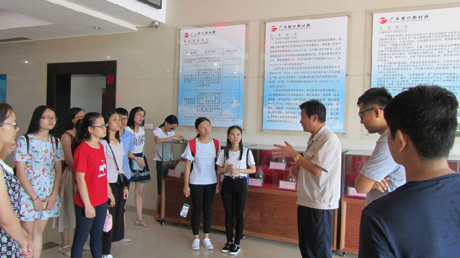 8月9日當(dāng)天廣西財經(jīng)大學(xué)優(yōu)秀畢業(yè)生參觀廣西銀億新材料有限公司,辦公室主任章群宏接待并公司狀況和發(fā)展前景進(jìn)行解說分析。