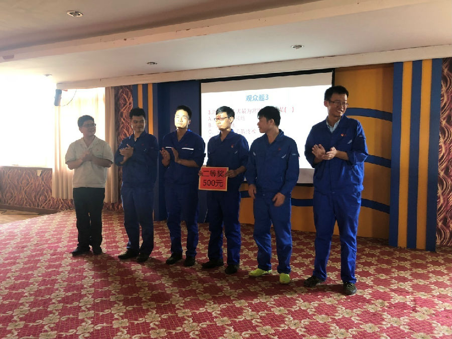 為深入開展安全生產(chǎn)月活動,提升安全管理水平,營造良好的安全文化氛圍,6月20日下午,廣西銀億圍繞“防風(fēng)險、除隱患、遏事故”為主題開展了安全知識競賽活動,此次競賽得到了公司領(lǐng)導(dǎo)的高度重視,章群宏副總經(jīng)理、朱新宇總經(jīng)理助理等領(lǐng)導(dǎo)來到現(xiàn)場為選手們加油打氣。競賽活動由各部門車間組合成5支隊伍共25名參賽選手,以必答題和搶答題形式,分為單項選擇題、判斷題、多項題、風(fēng)險題及現(xiàn)場觀眾有獎互動環(huán)節(jié)。比賽過程中,大家充分發(fā)揮自己掌握的安全知識,積極踴躍進行答題,展示出了員工扎實的安全素養(yǎng),競賽活動現(xiàn)場氣氛熱烈,隊員們都精神十足,特別是搶答環(huán)節(jié)既緊張又激烈,各隊都是有備而來,志在第一。經(jīng)過幾輪激烈的角逐,最終水處理車間與裝備能源部組合隊獲得一等獎,鈷鹽車間與浸出車間組合隊獲得二等獎。