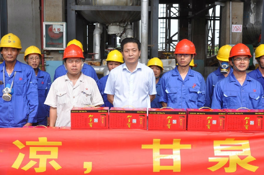 夏日炎炎,氣溫日漸攀升。為了做好防暑降溫工作,保障生產(chǎn)一線職工的健康,同時(shí)也體現(xiàn)公司工會對職工的關(guān)愛之情。7月15日下午,工會主席章群宏根據(jù)公司黨委和上級工會的指示精神,帶領(lǐng)工會委員唐宏華、劉美強(qiáng)一行前往車間一線開展一年一度的“夏送清涼”慰問工作,為奮斗在一線作業(yè)的300位職工送去了清涼與關(guān)愛。