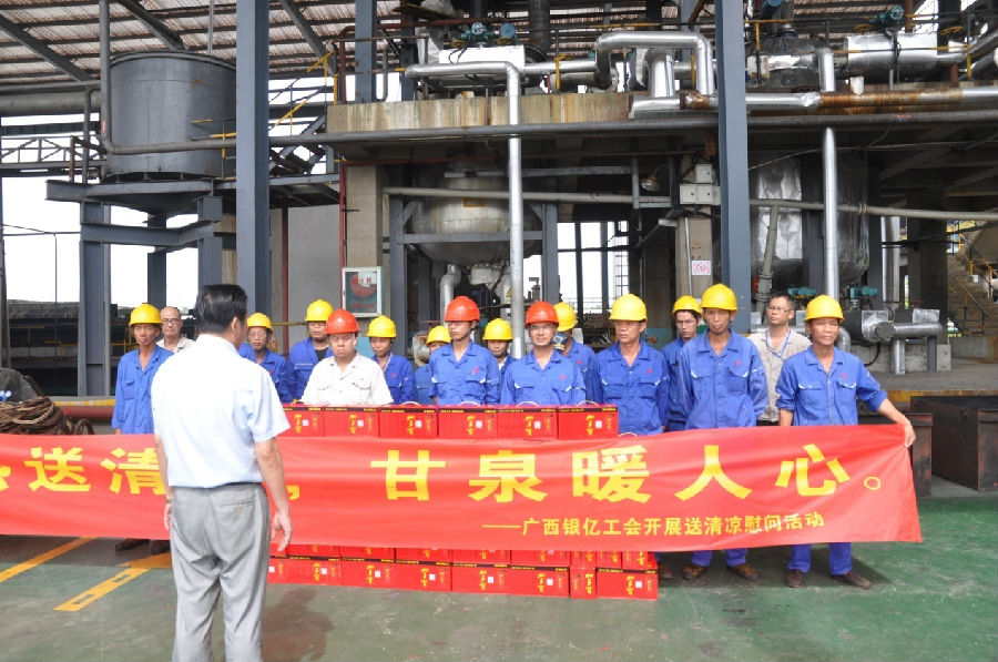 “夏送清涼”慰問活動已開展數(shù)年。每年開展車間一線職工的夏日慰問是工會作為職工的“娘家人”關(guān)心廣大職工的一項(xiàng)重要舉措,已成為了工會的優(yōu)良傳統(tǒng)。堅(jiān)持“以人為本”,一直是工會開展工作的基本理念,通過向一線職工發(fā)放清涼飲料、防暑藥品、宣傳暑期防病知識等舉措,體恤一線職工的盡職盡責(zé),降低高溫環(huán)境作業(yè)中中暑等人身事故的發(fā)生率,切實(shí)維護(hù)職工的身體健康和生命安全,讓職工在更好的工作環(huán)境中為廣西銀億的經(jīng)濟(jì)發(fā)展做出更大的奉獻(xiàn)。